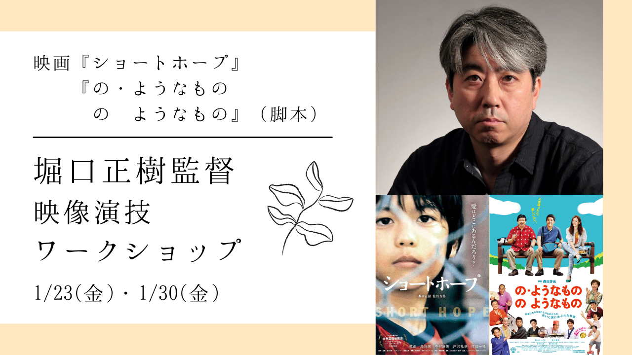 1月は、映画『ショートホープ』監督の堀口正樹さんをお招きして、映像演技ワークショップを開催いたします!